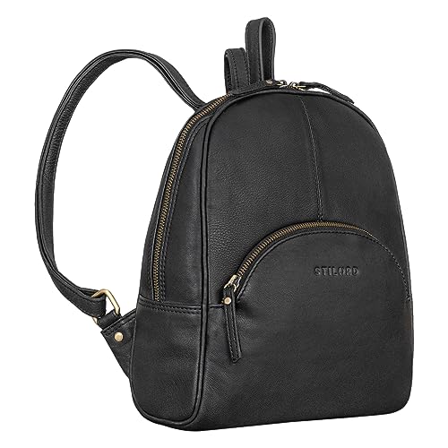 STILORD "Margot" Dagryggsäck Dam Läder Liten Vintage Ryggsäck för Kvinnor Anti-Tjuv Ryggsäck Handväska för Stadsresor Dagsryggsäck Äkta Läder Farbe:Svart