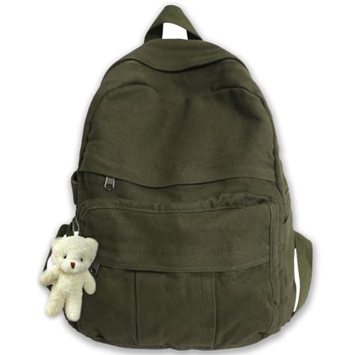 Y2K Ryggsäck, Vintage Canvas ryggsäck för kvinnor Stor kapacitet skolryggsäck för tonåringar Studentboksäck med nyckelring (Color : Green)