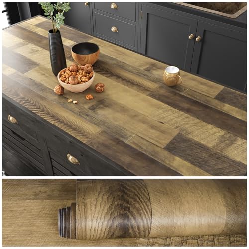 Livelynine 40CMx10M Möbler Folie Träfolie Vintage Trä Look Limfolie för Möbel Skåp Skrivbord Bord Köksbänk Bänkskiva Självhäftande Köksskåp Folie Stickning Vattentät
