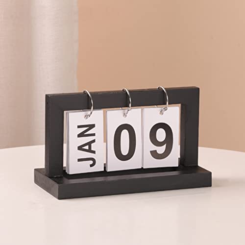 Evig kalender, flip-kalender, clamshell bordskalender, evig kalender att vika ner, vintage stil evig kalender, trä ändlös kalender för kontor, hushåll och skrivbord, 20 x 9 x 12 cm (svart)