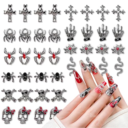 CHANGAR 40 st 3D halloween nagelkonst berlocker vintage punk legering nagelberlocker skalle spöke fladdermus spindel med strass legering nagelkonst smycken för halloween gör-det-själv nagelkonst