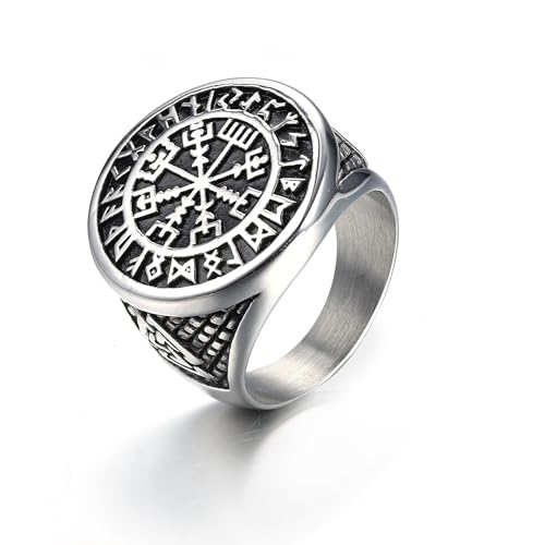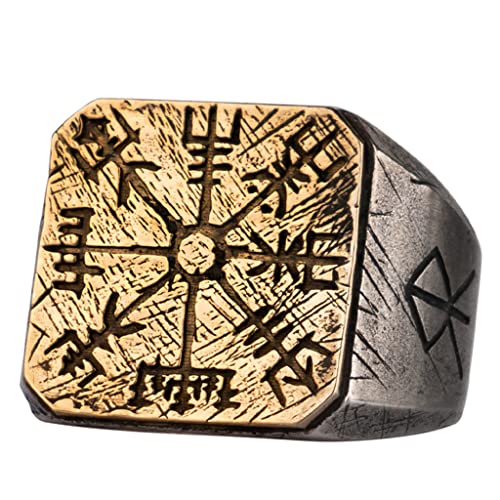 WYPAN Vikinga Ringar FöR MäN Sterling Silver,Handgjorda Graverade Nordisk Mytologi Valknut Runsymbol Vintage Hedniska NorrläNdska Smycken Biker Pojkar Presenter,Guld,Vegvisir