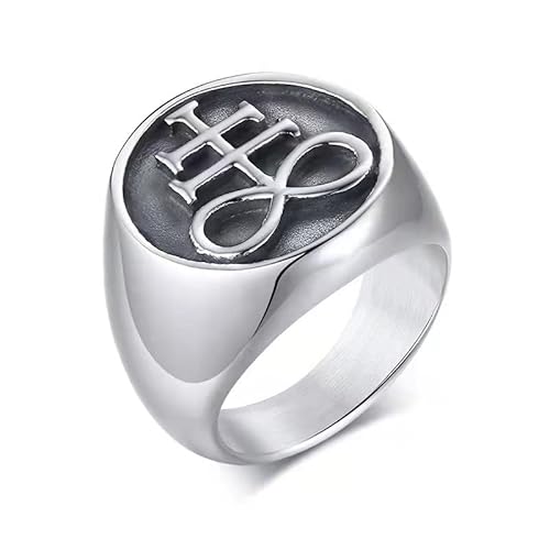 RobertDTesta MäN I Rostfritt StåL Satan Leviathan Signet Ring, Gotisk Vintage Leviathan Cross Ring ReligiöSa Smycken,Silver,12