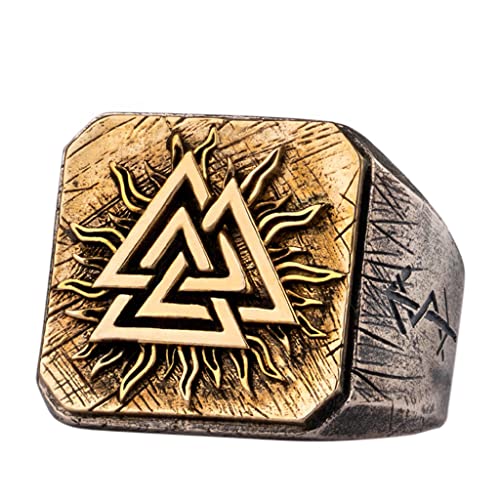 WYPAN Vikinga Ringar FöR MäN Sterling Silver,Handgjorda Graverade Nordisk Mytologi Valknut Runsymbol Vintage Hedniska NorrläNdska Smycken Biker Pojkar Presenter,Guld,Valknut