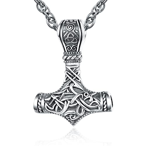 KINGWHYTE Thor hammarhalsband 925 sterling silver nordisk vintage viking runa hänge Mjolnir Oden-skydd smycken gåvor för män kvinnor, Sterlingsilver