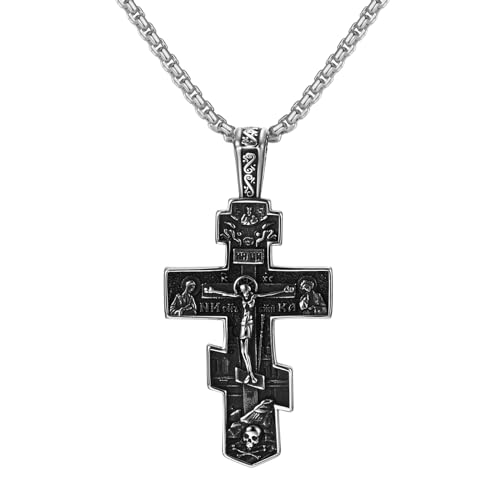 Cupimatch Kors halsband för män: ortodox kedja med Jesus rostfritt stål hänge i vintage stil religiösa kristna smycken för män pojkar, Rostfritt stål