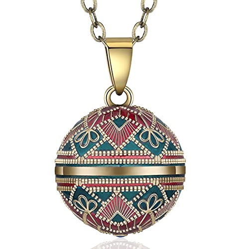 EUDORA Harmony Ball Angel Caller Pregnancy Women Necklace Vintage Wishing Chime Ball Bola hängsmycke för framtida mamma handmålade smycken original present till kvinnor, 114 cm + 76 cm, Silver Koppar