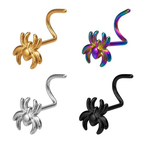 4 st 20 g spindelnäspiercing ringar för kvinnor män kirurgiskt stål vintage gotisk halloween uttryck liten spindel djur S-formad nässkruv näsborre näsa piercing smycken, Rostfritt stål, Ingen ädelsten