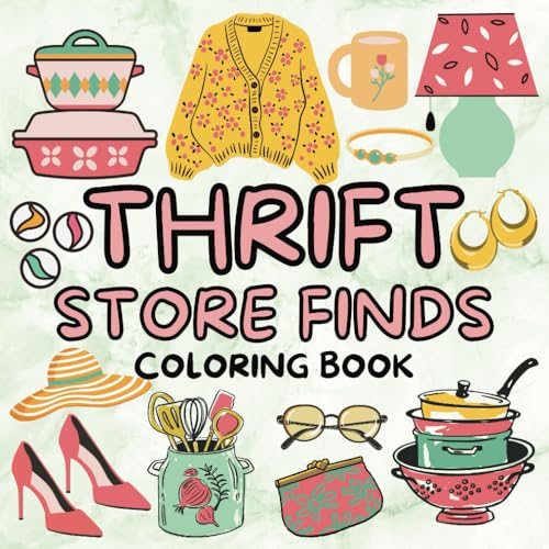 Thrift Store Finds Coloring Book: 50 Bold & Easy Designs | Retro & Vintage | Kids, Teens, & Adults