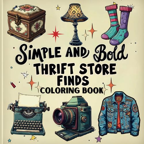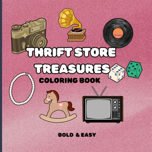Bold and Easy Thrift Store Finds Coloring Book: 50 Vintage Treasures, Retro Antiques, and Classic Collectibles for Relaxing Adult Coloring Fun