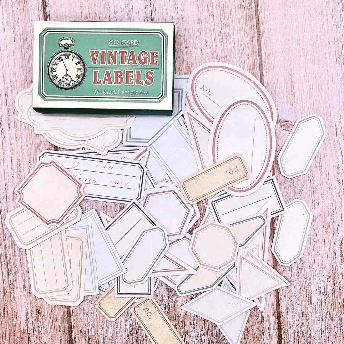 60x Klisteretiketter i Ask, Vintage - Nr. 1