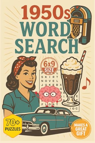 1950s Word Search Puzzle Book: A Nostalgic 6x9 Brain Game Collection Featuring Classic Cars, Music, TV Shows, Pop Culture & History – Fun for Baby Boomers, Seniors & Vintage Lovers