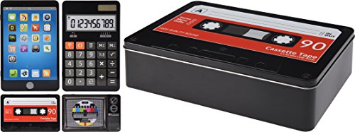 Elyte Retail Dekorativ förvaringslåda med 4 motiv, retrodesign, vintage stil? TV med testkort, band, smartphone, miniräknare