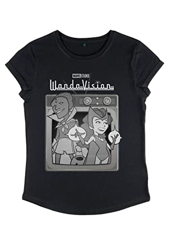Marvel Kvinnors WandaVision-Vintage TV-rullad ärm T-shirt, svart, L, svart, L