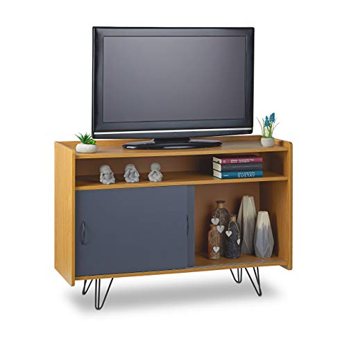 Relaxdays brun vintage tv-stativ, träutseende, underhållningscenter med 3 glidande lådor, retrodesign, H x B x D: 73 x 105 x 40 cm