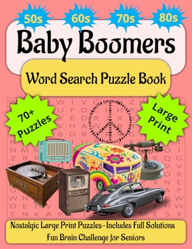 Baby Boomers Word Search Puzzles: Word Search Puzzles with Easy to Read Print about Baby boomers, Classic TV Shows, Vintage Cars, Featuring Music and ... Gift for Baby Boomers, Seniors, Parents