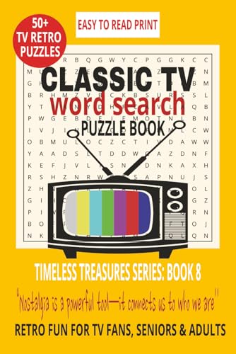 Timeless Treasures Large Print Word Search for Adults & Seniors: Book of Classic TV, Movies, TV, History& Vintage Music, Relive Sitcoms, Talk Shows 1950s.