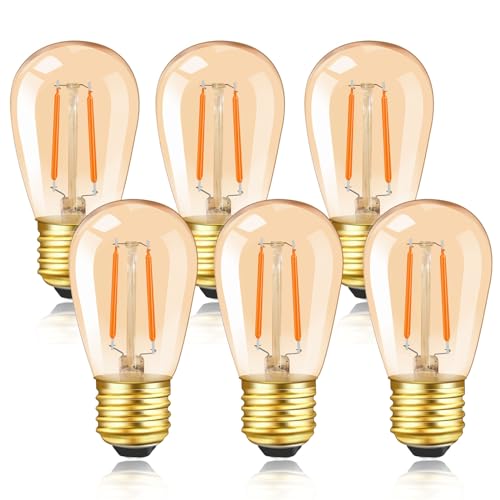 S14 Vintage E27 LED-filamentlampa, 1W Amber Edison ersättning 10 W glödlampa, inte dimbar, varmvit 2 200 K, AC 220 V, 6 st