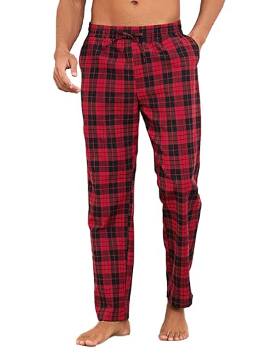 Litherday Pyjamasbyxor för män vinter långa bomullsbyxor herr pyjamas byxor pyjamas herr rutig vår sovbyxa med fickor och dragsko, Stil 1: röd, M
