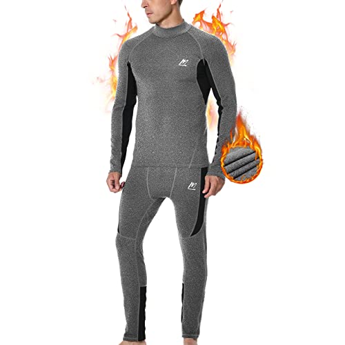 MeetHoo Underkläder för män, termisk underklädesset med ståkrage som andas, långärmad tröja + byxor skidset för herr för höst vinter, Färg: grå, M