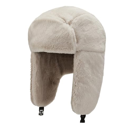ZYMIADOU Tjock rysk hatt Ushanka kepsar fest semester för höst vinter enfärgad med öronklaffar ryska Ushanka män, Krämig vit, one size