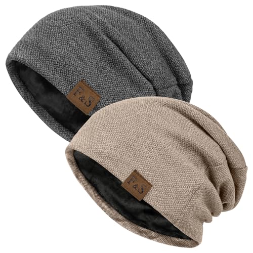 Beaulov 2-pack säckig mössa lätt herr vinter skalle hatt stickad mjuk löpning kepsar present till män, A – marinblå+mörkgrå, one size