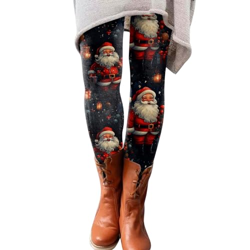 Varma damleggings fleecebyxor yogabyxor dam jul höst och vinter leggings konstnärligt tryckta mjuka stretchiga byxor dam jul leggings gåvor för kvinnor, Svart, L
