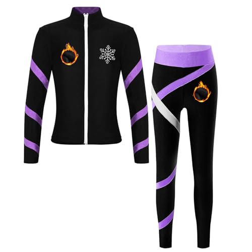 Mufeng Barn flickor träningsoverall fleece varm vinter jacka och leggings outfit konståkning gymnastik, Ljus lila, 13-14 �r