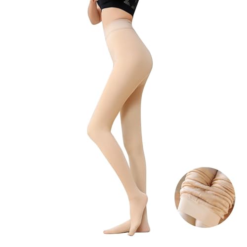 Hiltzo fleecefodrade tights för kvinnor, varma termiska ogenomskinliga leggings, vinter mjuka tjocka strumpbyxor, NAKEN, S-M