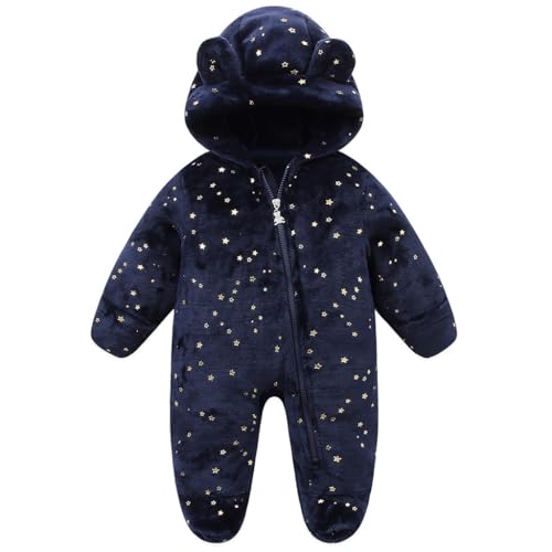 BRONG Nyfödd fleecepyjamas, sparkdräkt, vinter, babyoverall med huva, ett stycke, dragkedja, på fötter, flanell, kläder för 0–12 månader, marinblå, 3-6 Monate