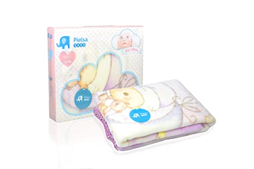 PIELSA 6376-54 babyfilt baby filt vinter månader tryckt spjälsäng filt lila storlek 80 x 110, lila