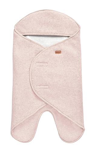 BÉABA, babynomad dubbel fleece, baby vinter filt, bilstol/barnvagn/gondel/transport, mjuk, varm, vattenavvisande, andas, passar med remmar, rosa/vit, 0–6 månader