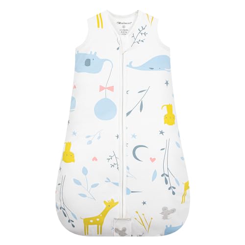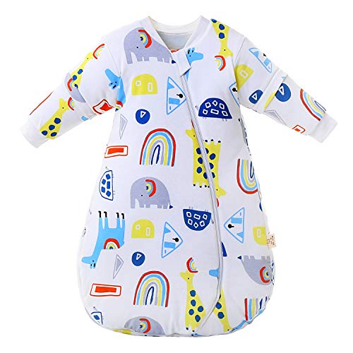 MIKAFEN Baby sovsäck långärmad vinter 3.5 Tog 100% ekologisk bomull sovsäck, Regnbågeelefant 6-14 månader