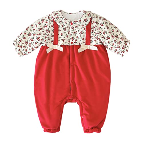 Sanlutoz Vinter Varmt Spädbarn Flickor Jumpsuits Söta Bomull Lång ärm Baby Rompers Floral Prinsessan (BRW2260, 12-18 månader)