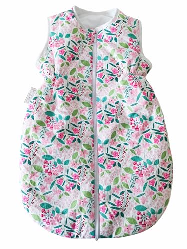 BISOO Baby Sovsäck 2,5 TOG 0-6 månader - Vinter Barnsovsäck - 100% OEKO-TEX Certifierad Bomullsjersey och Flätad Bomull - Blommönster (70 cm)