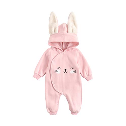 Baby spädbarn flickor kappa med tecknad kanin öron huvtröja jacka varm vinter huva mantel huvtröja kappa, Rosa, 0-6 Månader