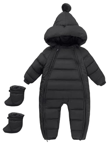Maeau overall, baby flicka, pojkar, vinterdräkt, fodrad, babyoverall, bomull, nyfödd 0–24 månader, babykläder, vinter, sparkdräkt, varm overall, långärmad med huva och skor, lekdräkt, svart med skor,