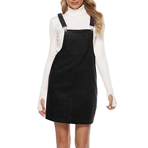 Petalum Hängselklänning dam, manchester, A-linje, minikjol, button down, axelklänning, höst, vinter, overall, hängselklänning med ficka, svart 1, L
