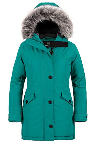Wantdo Kvinnors vinter varm pufferrock vattentålig utomhusjacka vindtät ytterkläder rock fuskpäls huvjackor, Mörkblått, XL
