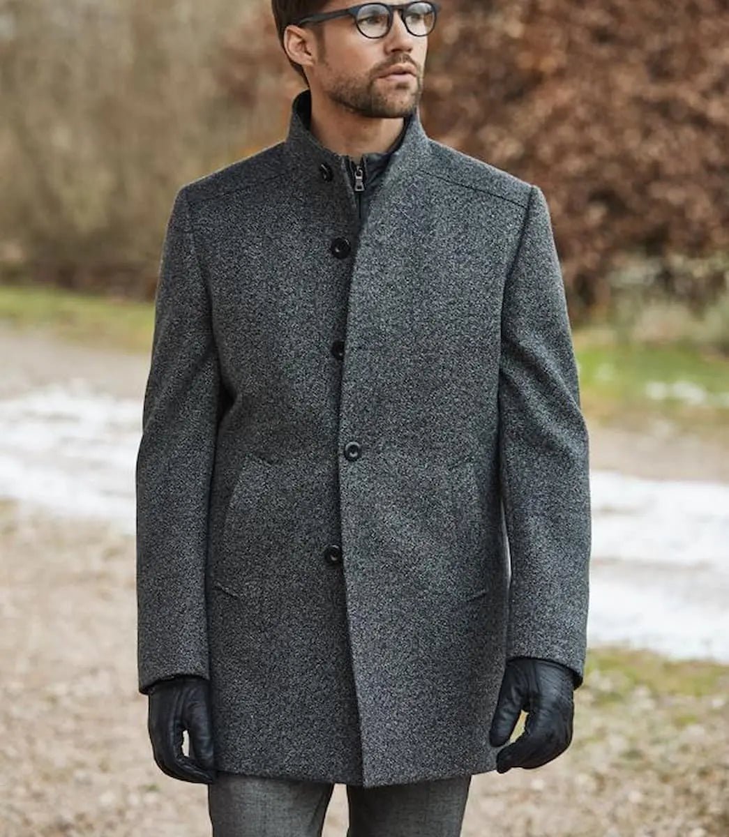 Springrain Herr-rock i ullblandning, enkelknäppt överrock med hakslag, värmande design, trenchcoat för vinter, Mörkgrått, M