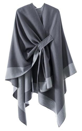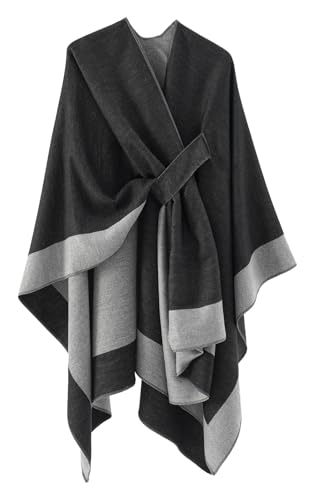 Zetieny Poncho dam eleganta stickade mössor vinter varma halsdukar öppen front cardigan rock dubbelsidig vändbar cape filt elegant, GRÅ, one size