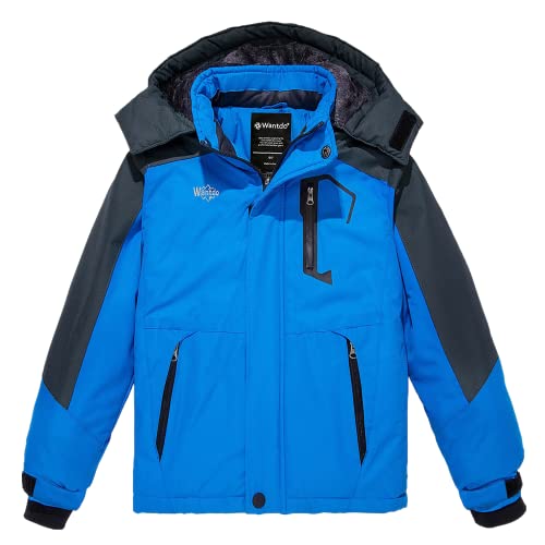 Wantdo Flickor berg skidjacka varm vinter fleece rock vattentät andas regnrock utomhus huvor jackor, blå, 128 cm