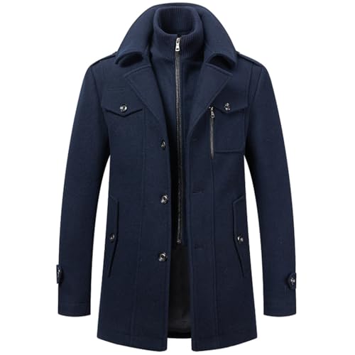 SUIUOI kappa herr ullrock vinter, herrock lång trenchcoat jackor vinterrock lång rock varm ulljacka med ledig enfärgad kashmirrock, ull kort kappa business fritid, Marinblå, L