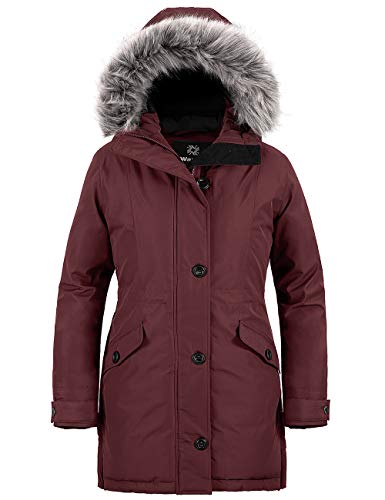 Wantdo Kvinnors vinter varm pufferrock vattentålig utomhusjacka vindtät ytterkläder rock fuskpäls huvjackor, vin, M