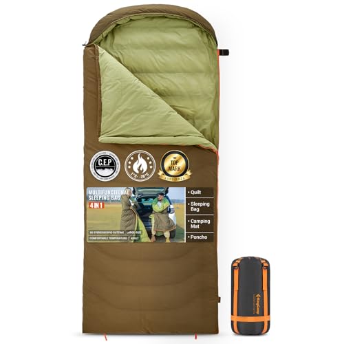 Kingcamp flanellsovsäck utomhus vinter, [sovsäck med avtagbart filt], 3-i-1 sovsäckar, XXL sovsäck bomull varmare för 3–4 årstider för vuxna vid camping äventyr