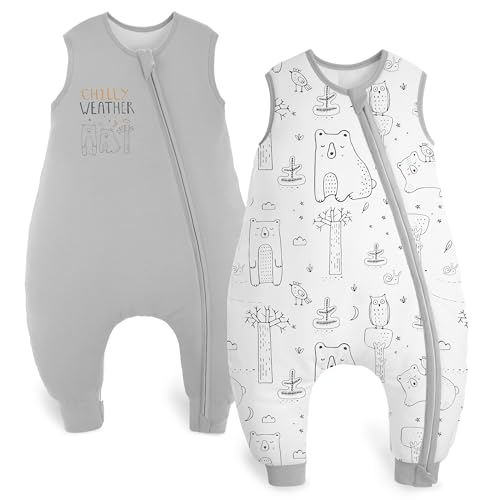 Yoofoss 2-pack baby sovsäck med fötter 1,5 tog bomull sovsäck baby med ben höst vinter baby sovsäck för 3–4 år barn pojkar flickor 90 cm – grå björn