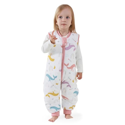 Mikafen Baby sovsäck vinter med fötter 2.5 tog 100% bomull barn vintersovsäck för pojkar och flickor, 70/höjd 75–85 cm, Hval regnbåge