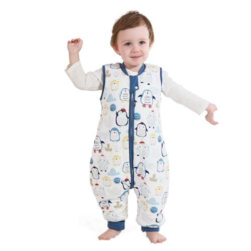 Mikafen Baby sovsäck vinter med fötter 2.5 tog 100% bomull barn vintersovsäck för pojkar och flickor, 90/höjd 95–105 cm, Blå pingvin