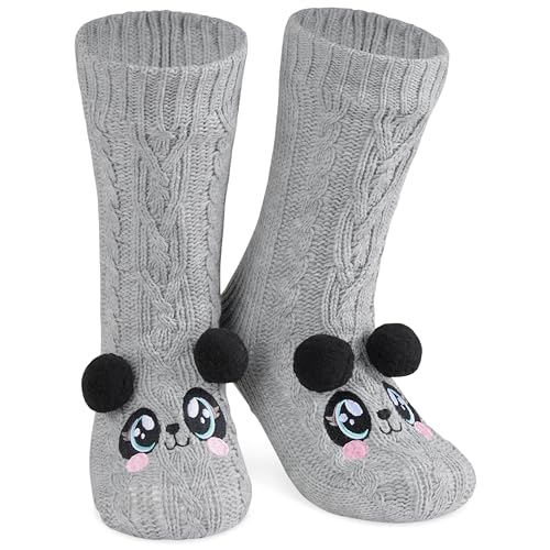 CityComfort Tofflor Strumpor för Kvinnor, Halkfria Strumpor i Varm Fleece, Vinter Hem Strumpor, Roliga Djur Julstrumpor En Storlek, Panda grå, one size