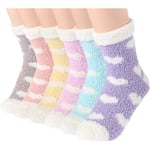 QKURT 6 par fluffiga strumpor, vinter luddiga sängstrumpor mysiga sömnstrumpor tjocka vinter toffelstrumpor för flickor kvinnor, multifärgs, one size